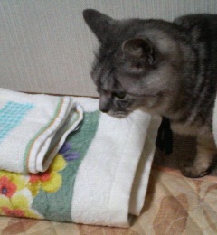 手元にあったボロい黒紐をこっそり首に結んでみたら意外に嫌がらずそのまま放置